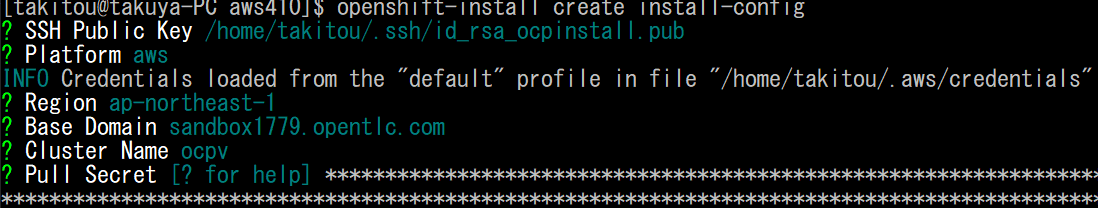 openshift-isntall create install-config #以下のインタラクティブが行われます。