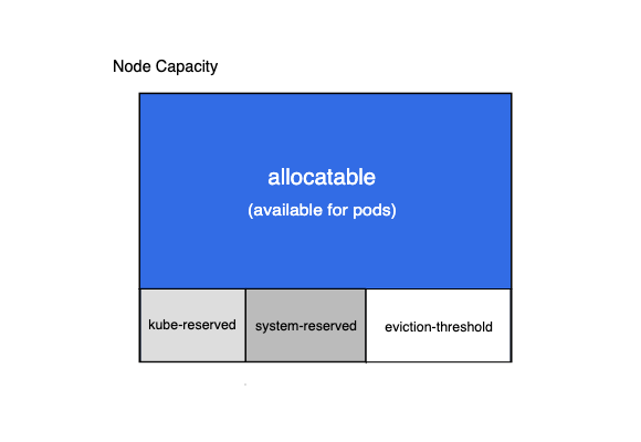 Kubernetesの公式ドキュメントを見ると、ノードのリソースのうち、実際にPodに割り当て可能な領域は以下のallocatableで表される領域であると書かれています。