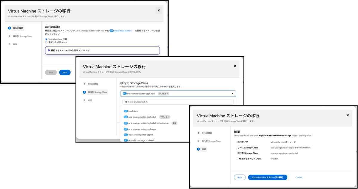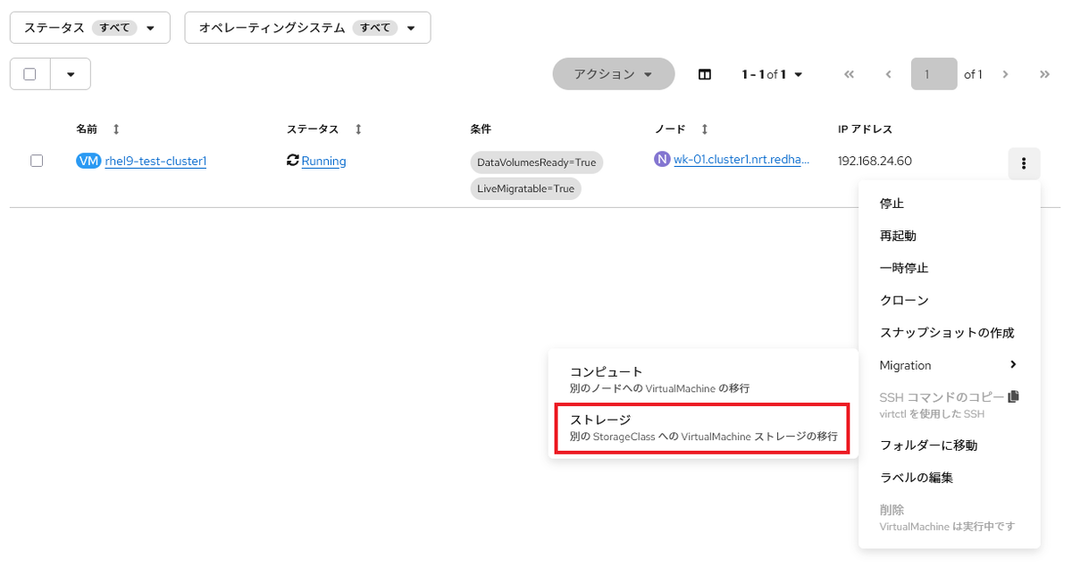 VM の Live migration もストレージの Live migration も運用保守においては欠かせないものかと思いますが、OpenShift Virtualization でも対応しています。