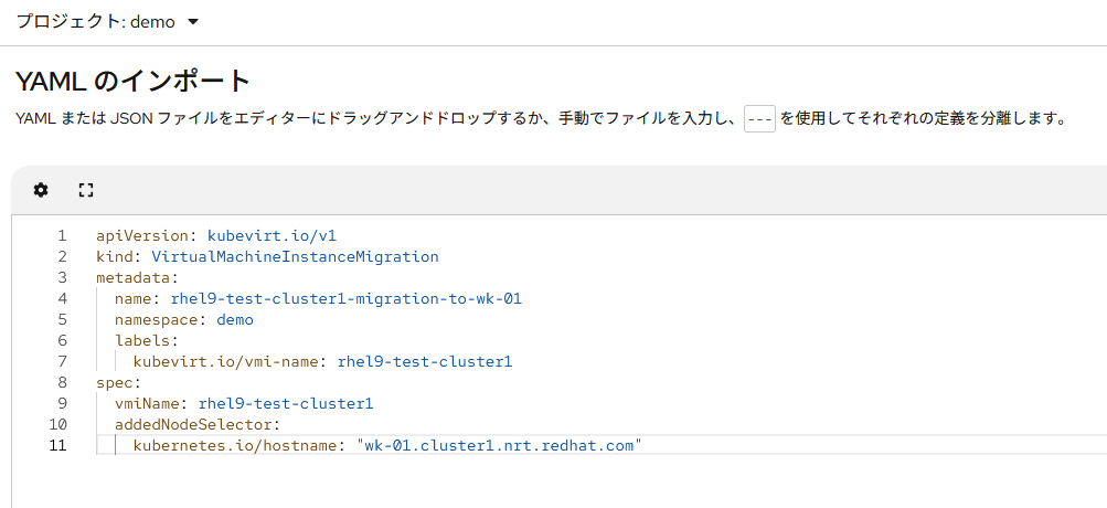 ※[12/04 09:30 追記] 今朝時点でリリースされている最新の OpenShift Virtualization 4.20.1 (stable channel), および 4.20.2 (candidate channel) において、GUI で指定したノードに移動しないというバグが確認されております。